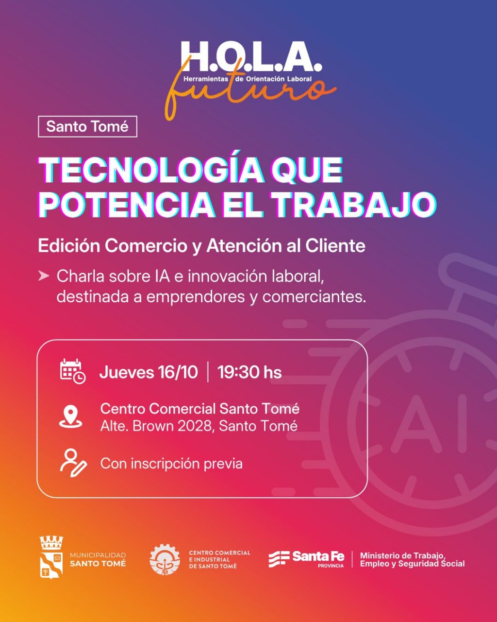 La Municipalidad de Santo Tomé invita a participar de una nueva edición del programa H.O.L.A. Futuro – Tecnología que potencia el trabajo, que en esta oportunidad estará enfocada en comercio y atención al cliente.