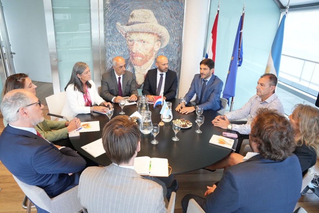 La agenda comenzó en la Embajada del Reino de los Países Bajos, con el embajador Mauritz Verheijden. Países Bajos es una potencia global en ingeniería portuaria y dragado, además de ser la quinta economía de la Unión Europea y el principal hub logístico del viejo continente a través del Puerto de Rotterdam. Durante el encuentro se analizaron inversiones neerlandesas en Santa Fe y el crecimiento de las exportaciones hacia ese destino. Puccini señaló: “El diálogo con el embajador Verheijden es fundamental. Países Bajos no solo es un destino clave para nuestra producción, también es un referente mundial en agroindustria tecnificada, gestión hídrica y transición energética, cuestiones centrales para nuestra provincia”.