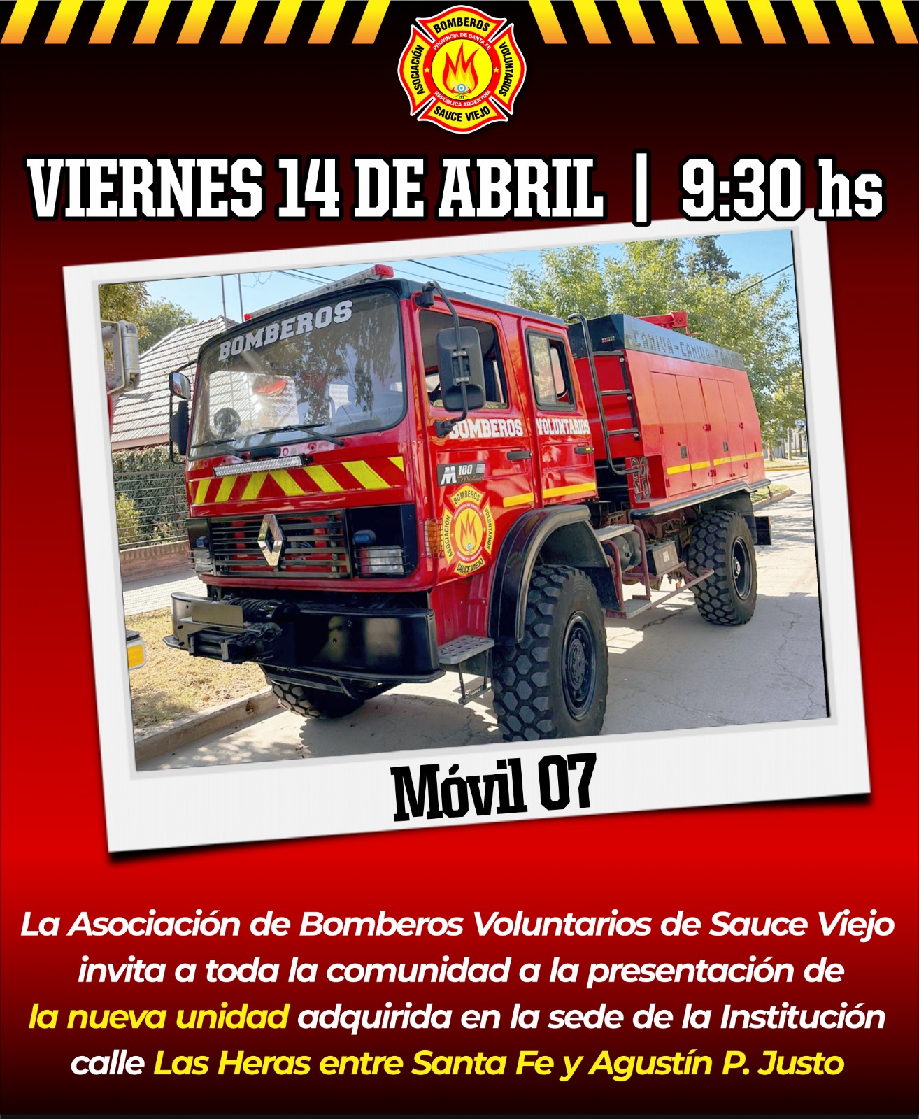 La Asociación de Bomberos Voluntarios de Sauce Viejo presentará este viernes su nueva unidad ante toda la comunidad.
