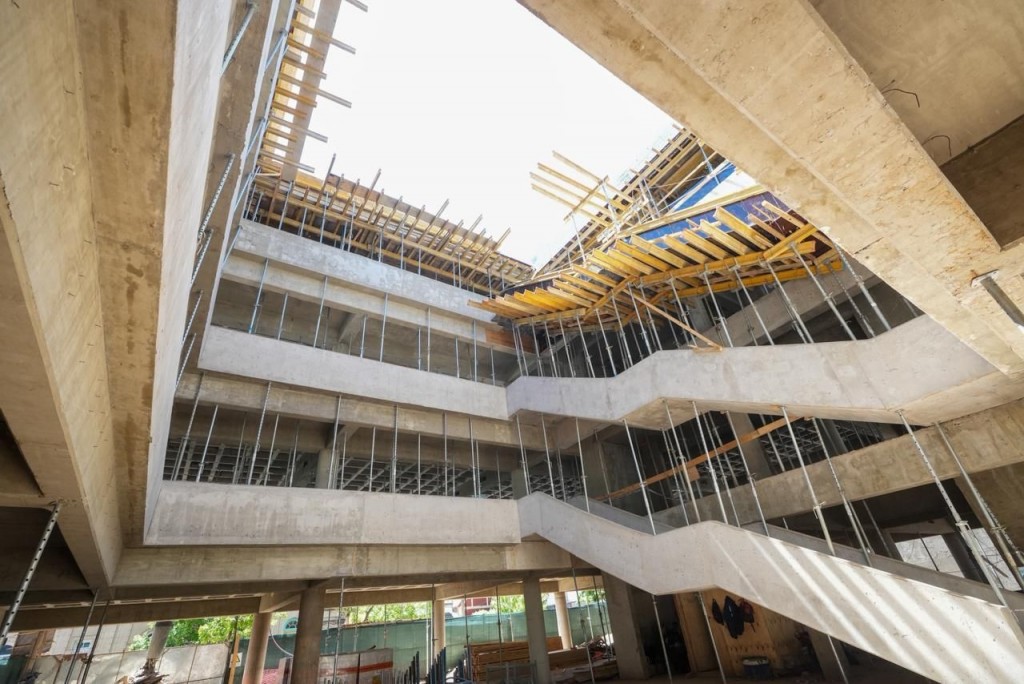 Los trabajos que financia el Gobierno Provincial registran un avance del 25 %. Al momento ya se hormigonaron las losas del subsuelo, del primer y del segundo piso, consolidando la estructura base del edificio. Actualmente, se trabaja en el encofrado de la losa del tercer y último piso, que se prevé hormigonar a mitad  de octubre, siempre que las condiciones climáticas lo permitan.
