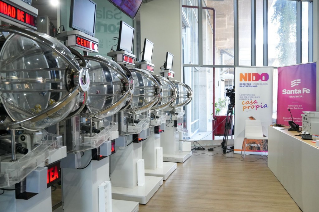 Se llevó a cabo este lunes en la Sala de Lotería Provincial de la ciudad de Santa Fe la primera etapa del 16° sorteo de los Créditos Nido -que impulsan el Gobierno Provincial y el Banco Municipal de Rosario- con los inscriptos en los departamentos La Capital y Rosario. Este martes 11, en tanto, se completará la instancia con los 17 departamentos restantes. De esta nueva entrega participan 42.957 santafesinos y santafesinas y se sortean 300 créditos nuevos que se suman a los 4.958 ya otorgados. Los resultados pueden consultarse ingresando a www.santafe.gob.ar/ms/nidocreditoshipotecarios
