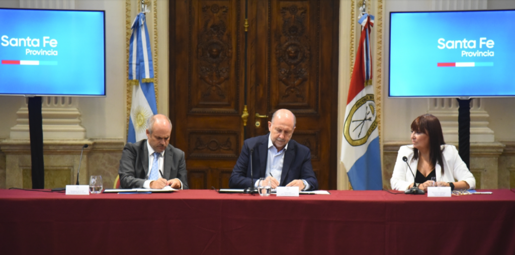 El gobernador Omar Perotti encabezó este miércoles, en Rosario, el acto de firma de un convenio con el presidente de la Unidad de Información Financiera (UIF), Juan Carlos Otero, para la creación de una delegación de ese organismo en la ciudad, con el fin de fortalecer el sistema de prevención y lucha contra el lavado de activos, y el financiamiento del terrorismo hacia toda la extensión del territorio argentino.