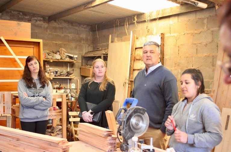 Junto al Intendente Gaston Marconcini, la legisladora recorrió los talleres municipales de carpintería y porcelana fría.