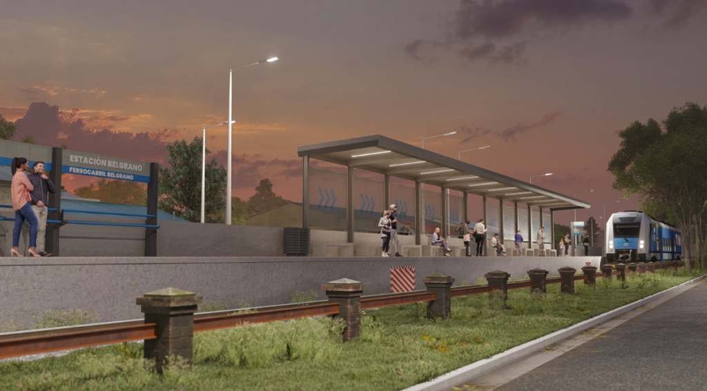 Para explicar la obra, la subsecretaria de Obras Públicas, María Eva Valenti, mostró una presentación digital y se refirió a la materialización de apeaderos, refugios de espera para pasajeros y los accesos a las correspondientes plataformas, “los mismos tendrán un desarrollo lineal con dimensiones de 100 x 3 metros aproximadamente, con rampas en los extremos y un acceso perpendicular al andén en su parte media. La parte semicubierta de cada uno de los andenes, para la espera del material rodante por parte de los pasajeros estará conformada por una estructura metálica de acero galvanizado”.