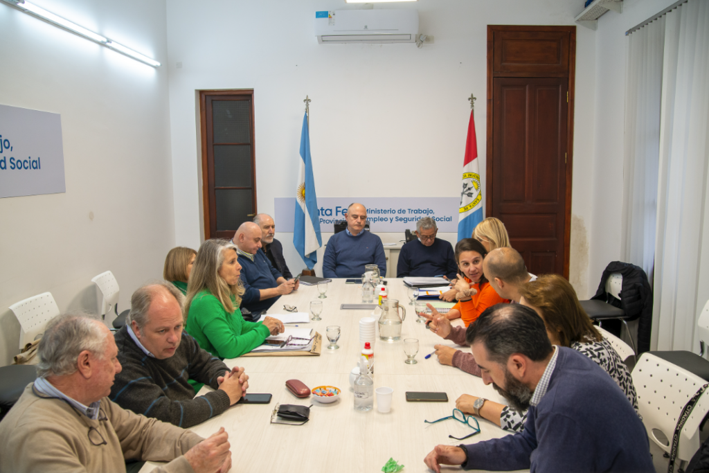 La reunión estuvo encabezada por el director de la regional Santa Fe, Juan Mario Quagliotti; y el subsecretario de Trabajo, Antonio Milici, acompañados por funcionarias y funcionarios de los ministerios de Salud y Economía.