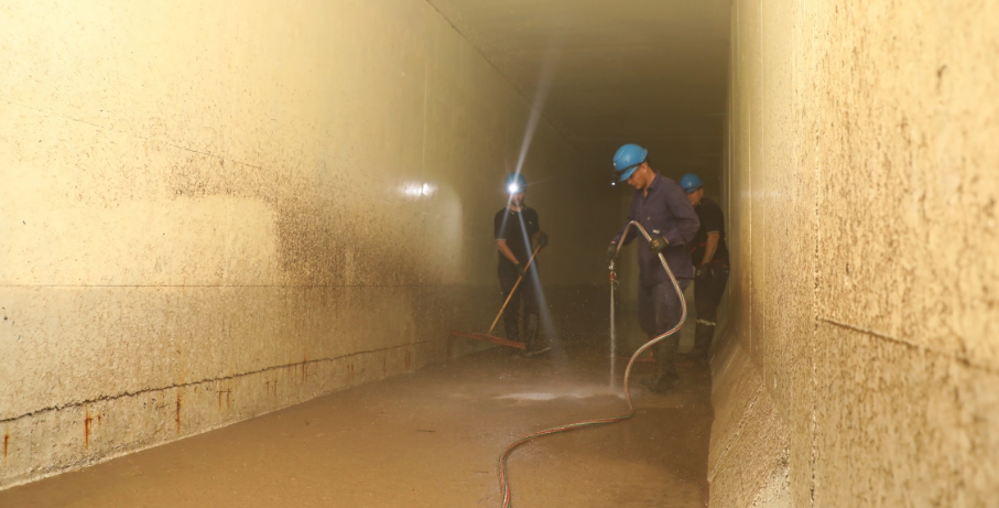 Para ello, se fue bombeando el agua necesaria para poder llegar a tener todas las medias cisternas al 25% de capacidad, para luego dosificar hipoclorito de sodio y trabajar en la desinfección. Una vez finalizado este proceso, se comenzó a bombear con niveles superiores al 50%, para dejar habilitas las medias cisternas y comenzar a repetir el proceso con las medias cisternas restantes.