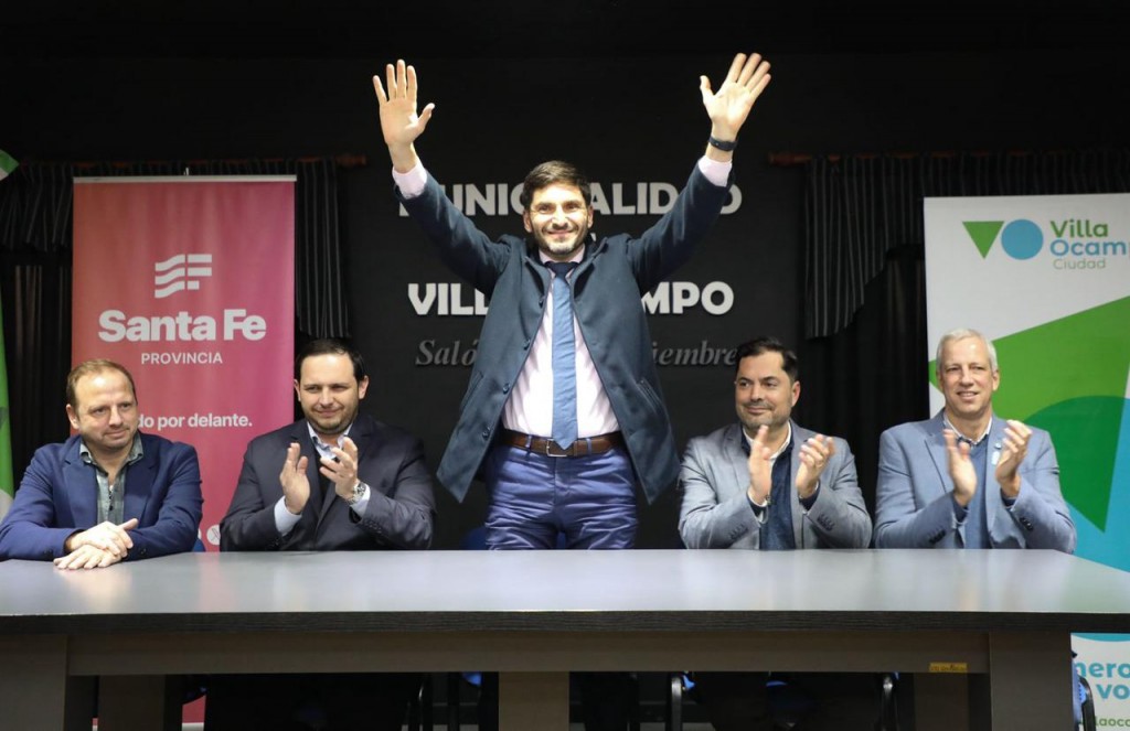 En Villa Ocampo, el gobernador entregó un aporte no reintegrable por 376 millones de pesos en el marco del Programa de Obras Urbanas para la reconstrucción de la Plaza San Martín. Además firmó un contrato con la Municipalidad para la finalización de la construcción de 30 viviendas. La obra comenzó en 2022 y a fines de 2023 las tareas presentaban un avance de apenas el 22%, por lo que se decidió rescindir el contrato con la empresa adjudicataria y licitar lo que resta de la obra en dos tramos de 15 viviendas cada uno.