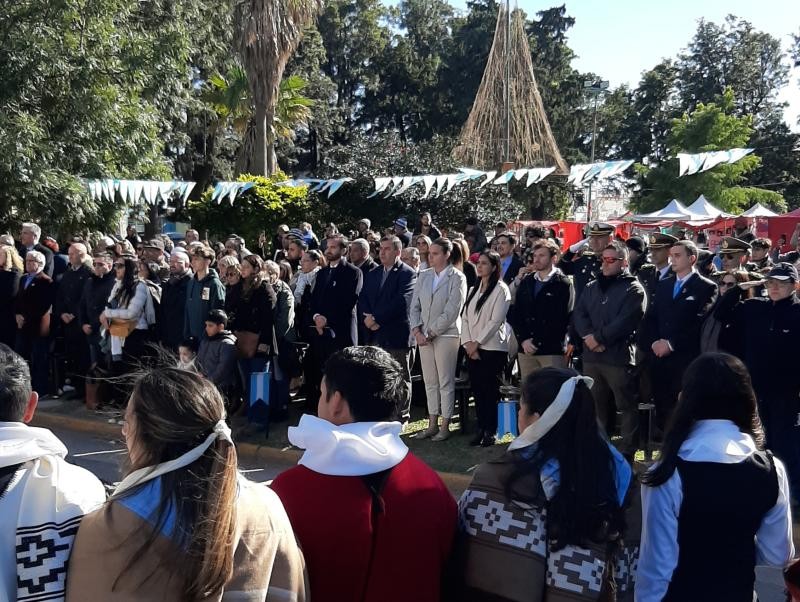 El acto oficial fue encabezado por el intendente Miguel Weiss Ackerley y se realizó este sábado 25 de Mayo, frente a la Iglesia Inmaculada Concepción, luego del Solemne Tedeum que se desarrolló en dicha parroquia.
