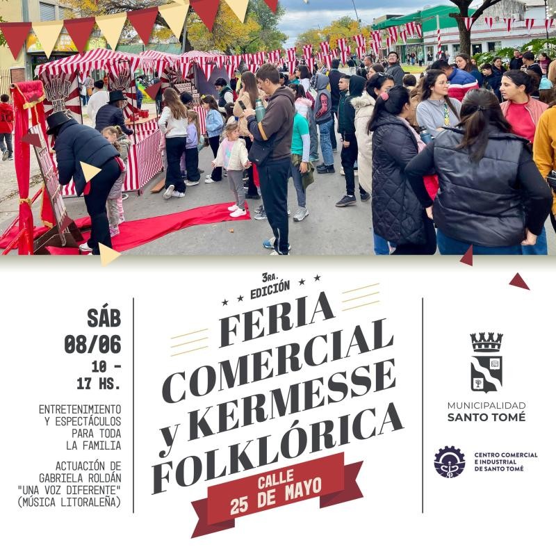 La Municipalidad de Santo Tomé, junto con el Centro Comercial e Industrial de la ciudad y emprendedores independientes, invitan a la 3ª edición de la Feria Comercial y Kermesse que, en esta oportunidad, tendrá una temática folklórica.