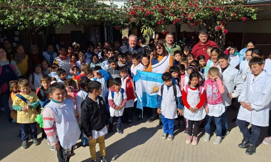 En la ocasión compartieron un pequeño acto en el patio de la escuela junto a los alumnos del nivel inicial y el nivel primario donde entregaron una bandera de flameo y un aporte económico para la compra de libros de literatura infantil. Además, el senador anunció que se va a hacer la compra de juegos infantiles para la escuela.