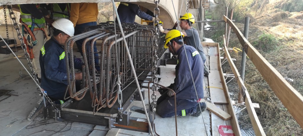 El cierre al tránsito fue solicitado por la contratista para avanzar con las perforaciones que permitirán colar el hormigón en los encofrados de las ménsulas suplementarias. Estas piezas, colgadas de la propia estructura del viaducto, están conformadas con armaduras metálicas en las que se trabaja desde las plataformas colgantes. Durante la jornada la empresa instalará sobre la calzada las placas y tensores metálicos desde los cuales quedarán tomadas estas vigas suplementarias una vez fraguadas.