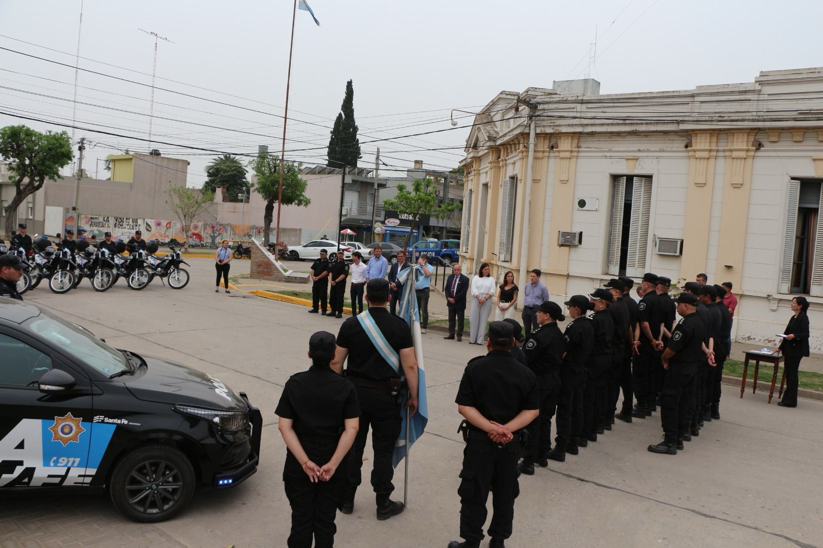 El acto donde se entregaron 4 automóviles y 6 motocicletas se desarrolló en la ciudad de Las Rosas, encabezado por el ministro Pablo Cococcioni y el intendente Javier Meyer, acompañados de la secretaria de Coordinación Técnica y Administración Financiera del Ministerio, Georgina Orciani, el senador provincial Pablo Verdecchia, autoridades locales y representantes de instituciones.